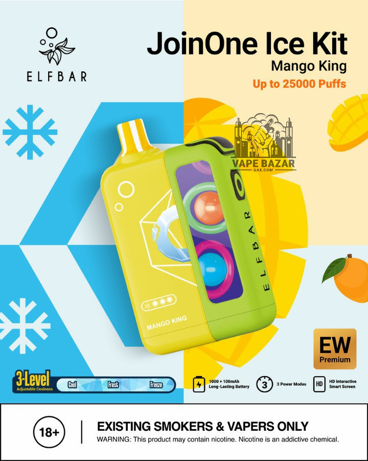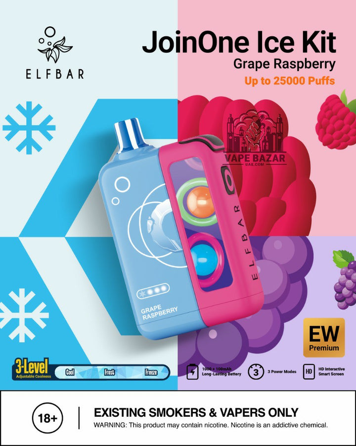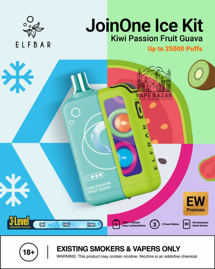 If you're searching for a powerful, stylish, and refreshingly cool disposable vape with massive longevity, the ELF BAR JoinOne Ice Kit 25000 Puffs is the ultimate pick. Get yours now from Vape Bazar UAE and elevate every puff with bold flavor and pure satisfaction.
