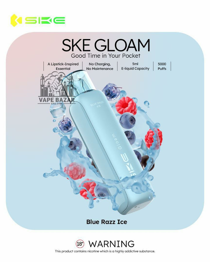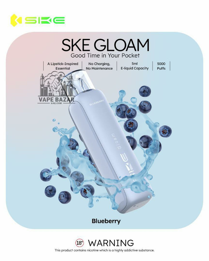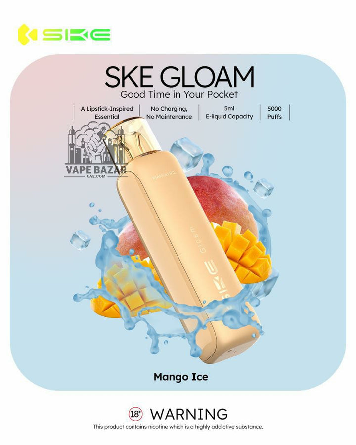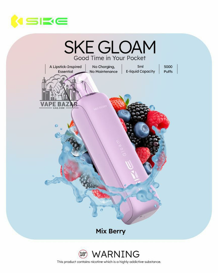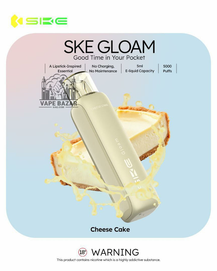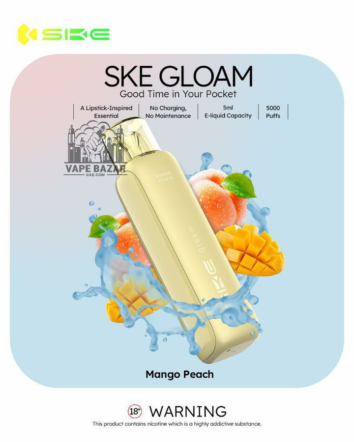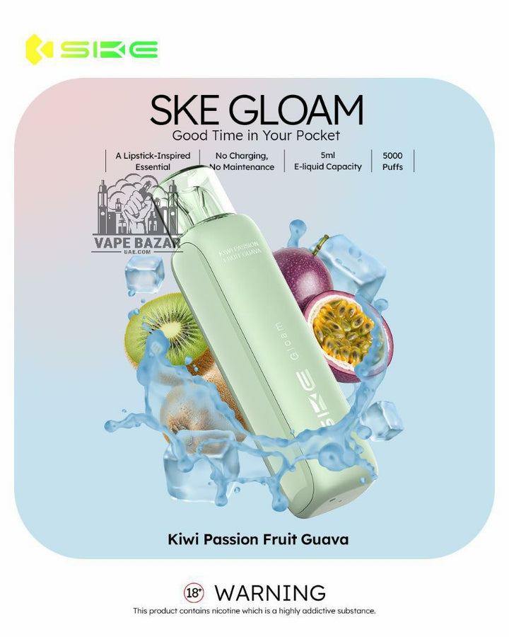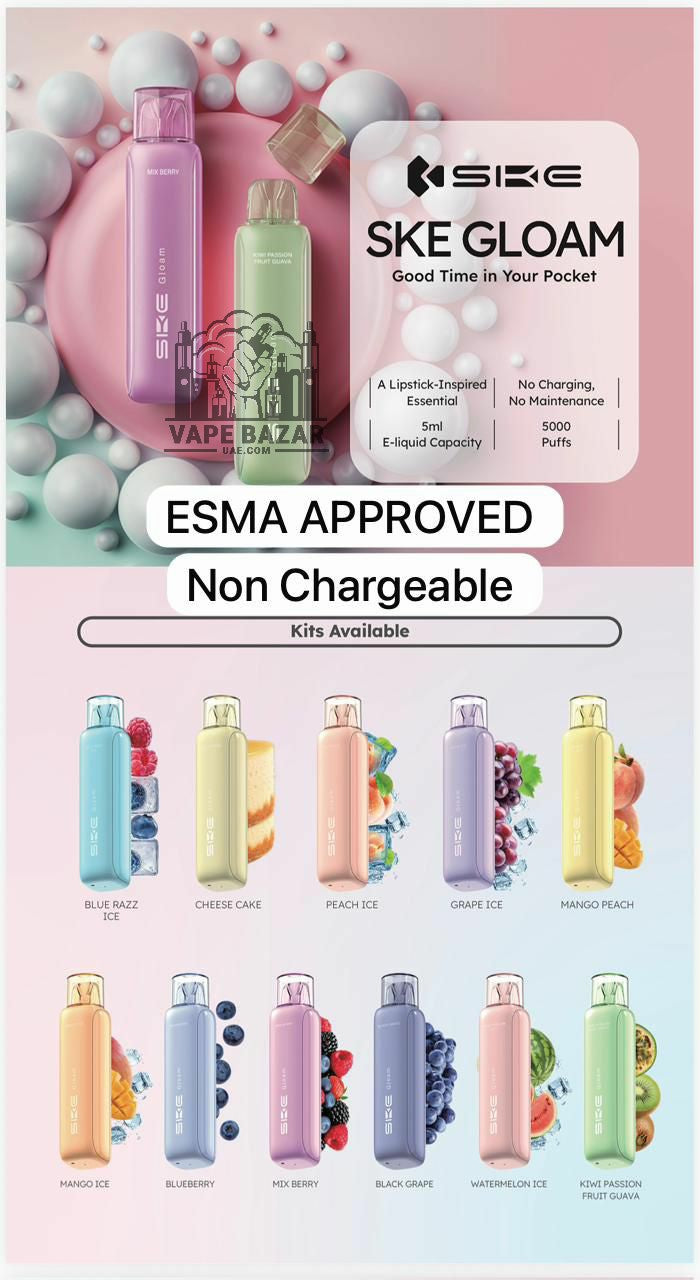 Available in a variety of mouthwatering flavors, from fruity delights like Mango Peach and Kiwi Passion Fruit Guava to sweet sensations like Cheesecake and Mix Berry, the SKE Gloam 5000 makes every puff a memorable one.
